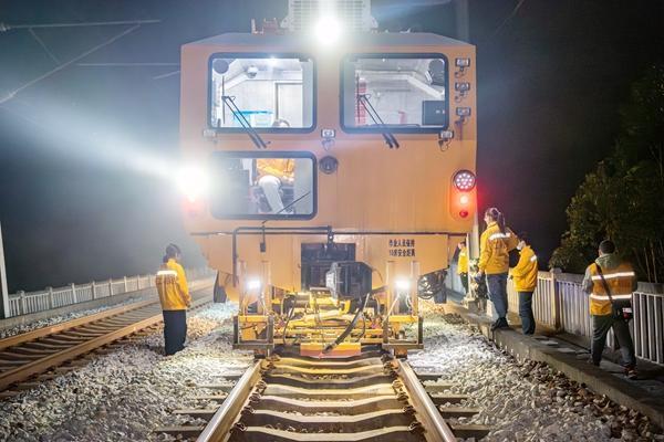 女子大机构成员在车上车下配协功课。李勇摄2月5日凌晨1时,年味渐浓,春运正忙。当大大齐东说念主还千里浸在暖热的黑甜乡,衡柳高铁柳州至鹿寨区间的理会上,却亮起了数盏明灯。几台金黄色的“钢铁巨兽”——捣固稳固车,正迟缓驶入功课区,冲破了寒夜的寂静。